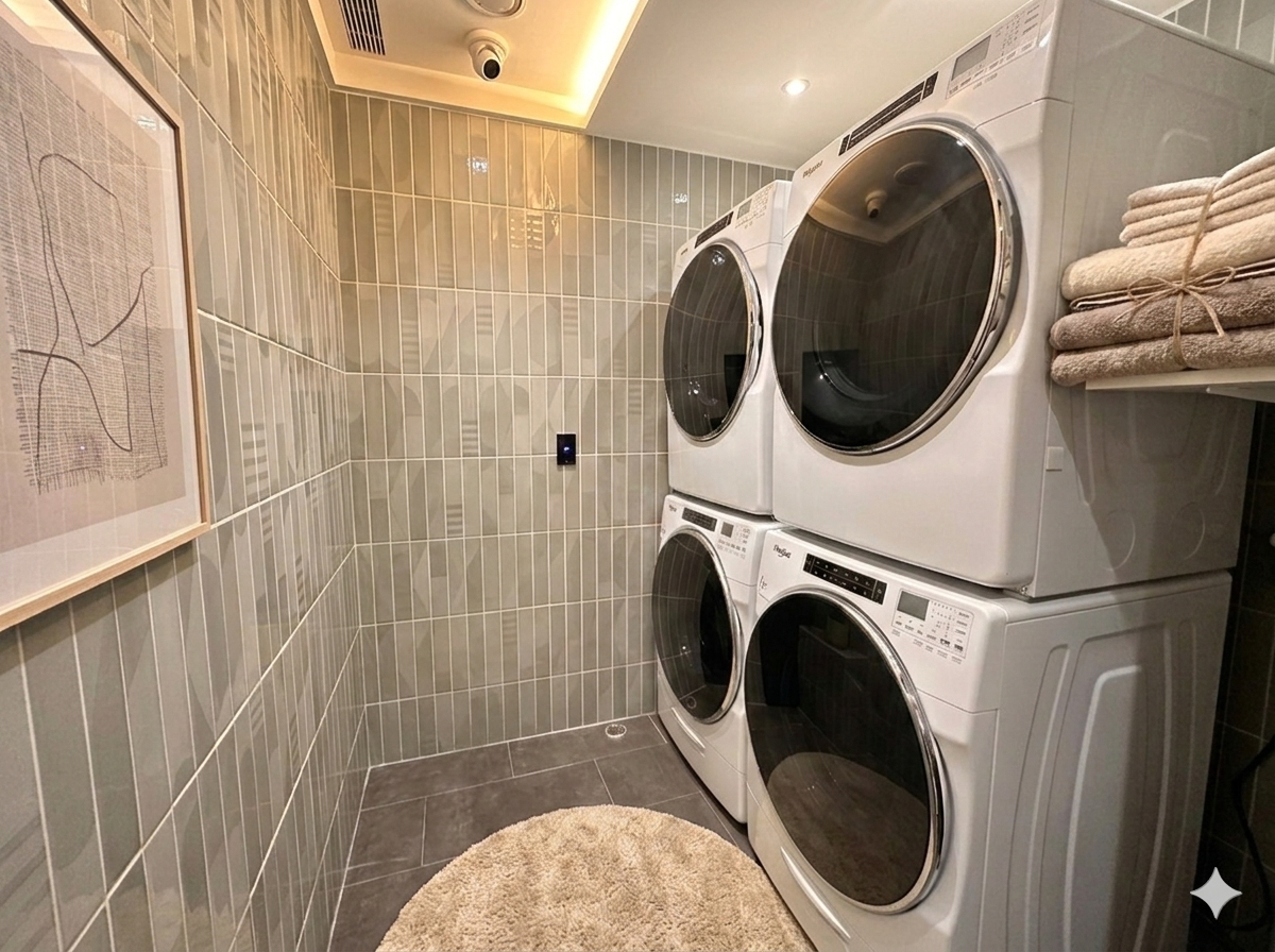 提供專屬的自助洗衣房,配置多台 Whirlpool 洗衣機與烘衣機