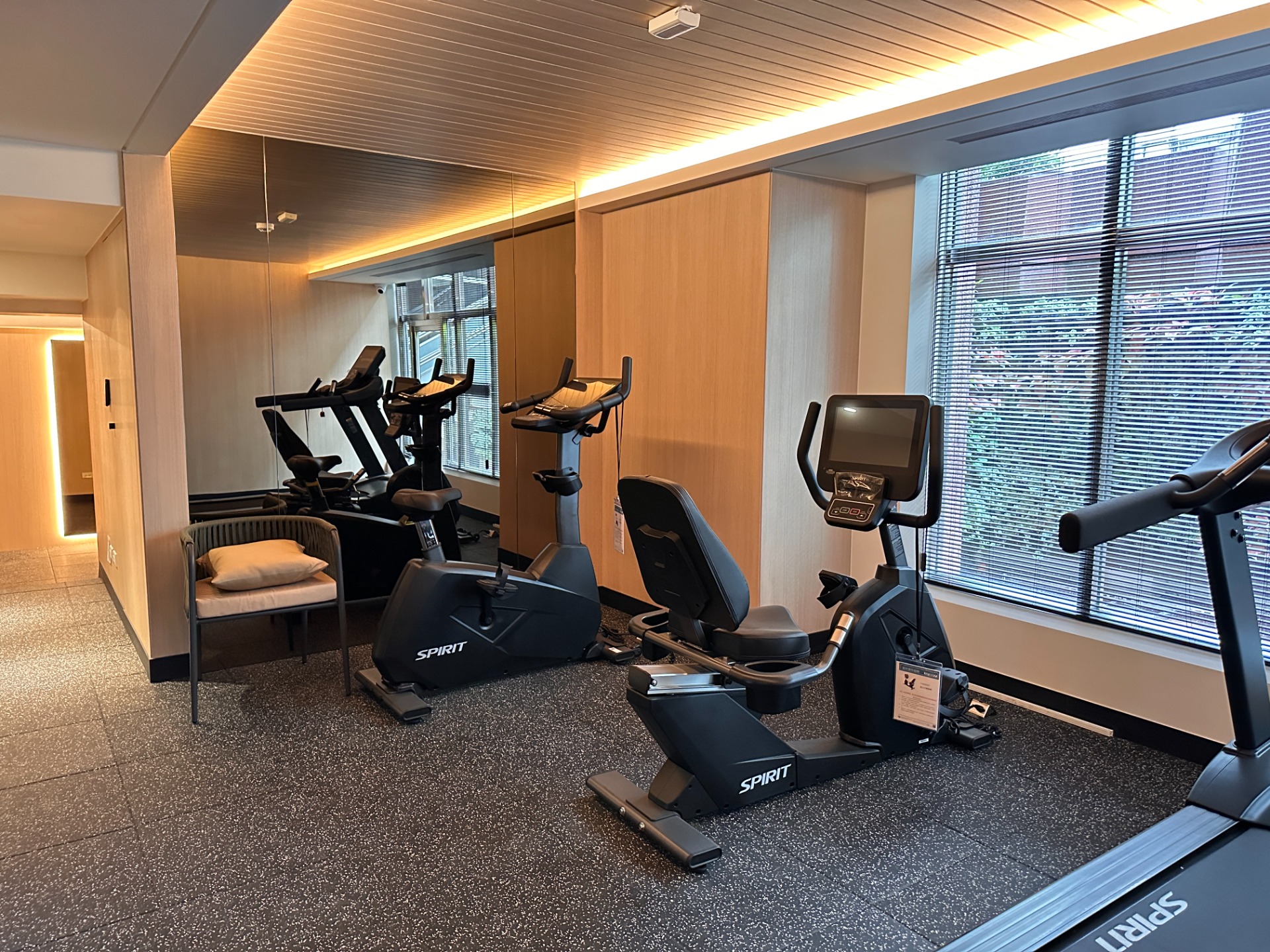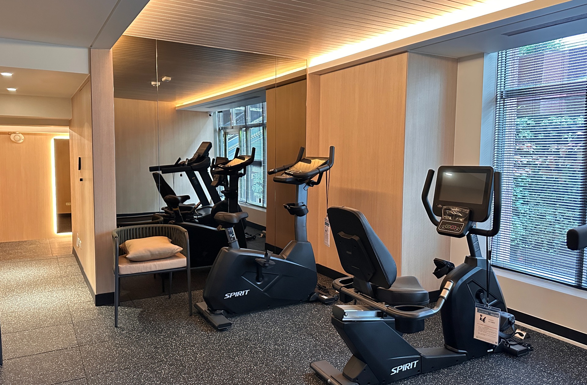 提供採光充足、配備多項跑步機與健身車的健身房,並設有大面積鏡牆的多功能運動區